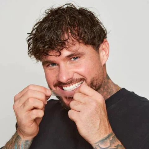 - Destapa un sobre de GumStrips® y coloca la tira grande en los dientes de arriba, y la pequeña en los dientes de la parte inferior.